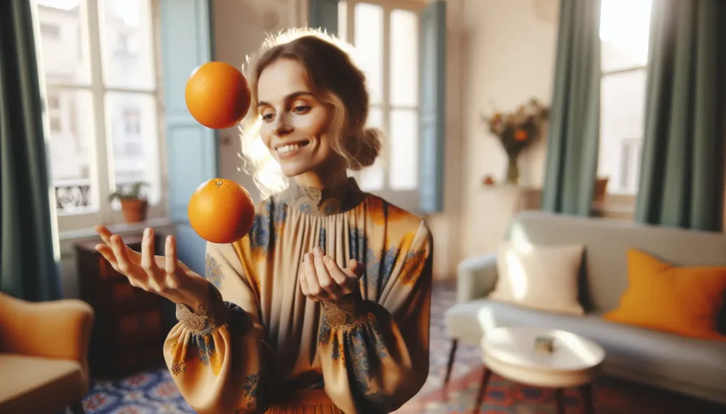 1. Hun er en kløpper på sjonglering – med appelsiner!