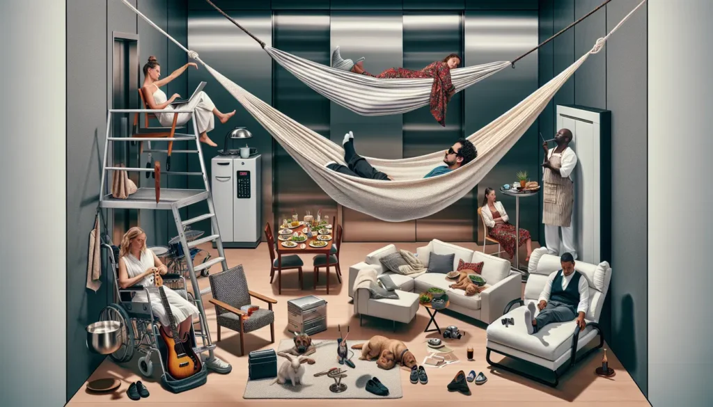 Bare for deg som lever for spenning og har null problem med å forklare seg for vaktmesteren. Heng opp køyen i heisen – og de få sekundene mellom etasjene blir aldri det samme. Husk konsekvensene av plutselige stopp og at du risikerer nysgjerrige blikk fra folk som heller ønsker seg hjem enn å forklare hvor de skal trykke.