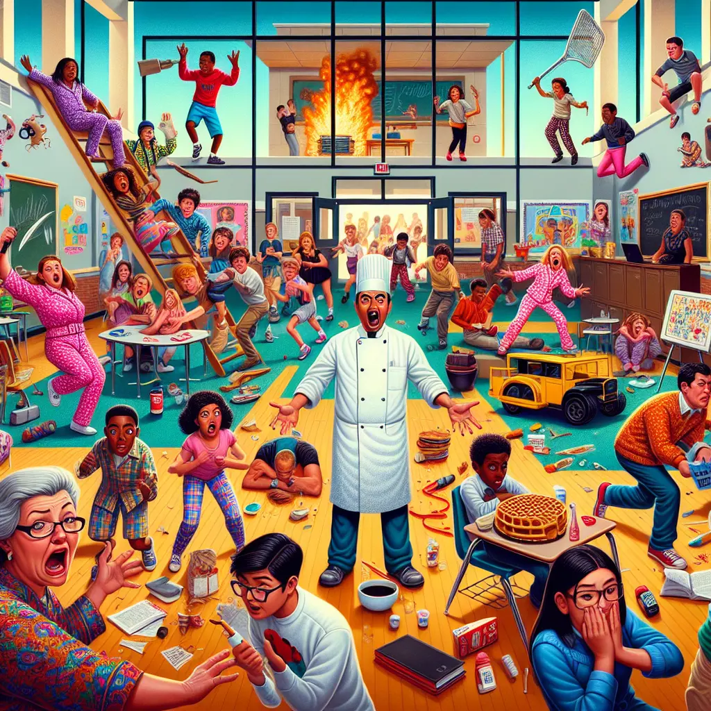 Alle vet den deilig berusende følelsen når en uventet brannalarm gir deg en uplanlagt skolestart pause. Men denne gangen var det ingen øvelse! Flokket som forvirrede sauer ut av klasserommene, ble det tydelig at dette faktisk var en ekte tilfelle. Heldigvis var det bare en overivrig kokk som hadde glemt av noen svidde vafler på skolekjøkkenet. Krise avverget, men historien lever videre!