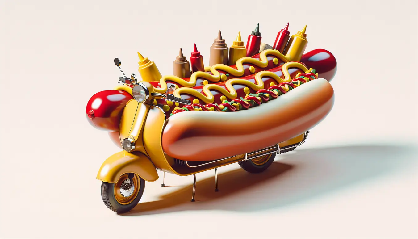 Til slutt; hvem kan vel motstå en mopedbil bygd som en hotdog – komplett med kunstig sennep, ketchup og til og med løkpynt? Her har designerne latt grillkosen ta helt overhånd, og det ser ikke ut som kjøretøyet hører hjemme noe annet sted enn på vei til tivoli eller gatefestival. Et sikkerstikk for sultne sjeler, og maskinen for deg som vil være både grillkongen og kjøretøyentusiasten i ett og samme smilende, pølseformede skall.