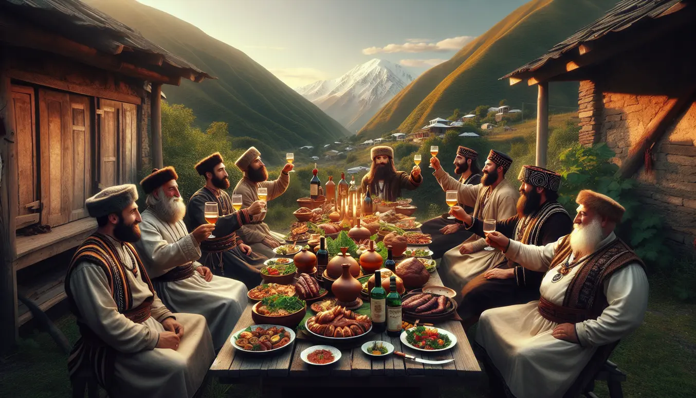 I Georgia er middag ikke bare mat, det er et maraton! Når noen byr til «supra», betyr det timer – og noen ganger dager – med mat, vin, og vitsing. En tamada (toastmaster) styrer showet, og gir deg taleutfordringer som gjør selv skolens russepresident svett i panna.