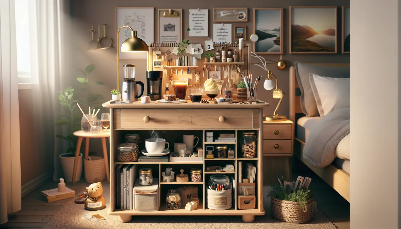 Hvorfor traske gjennom hele huset halvt i søvne for morgenkaffen? Sett en liten kaffemaskin og noen fancy kopper på nattbordet, og voilà – du har din egen eksklusive kaffebar direkte ved sengen. Perfekt for morgengretne eller nattekreative sjeler. Bonuspoeng hvis du klarer å la være å søle på lakenet!