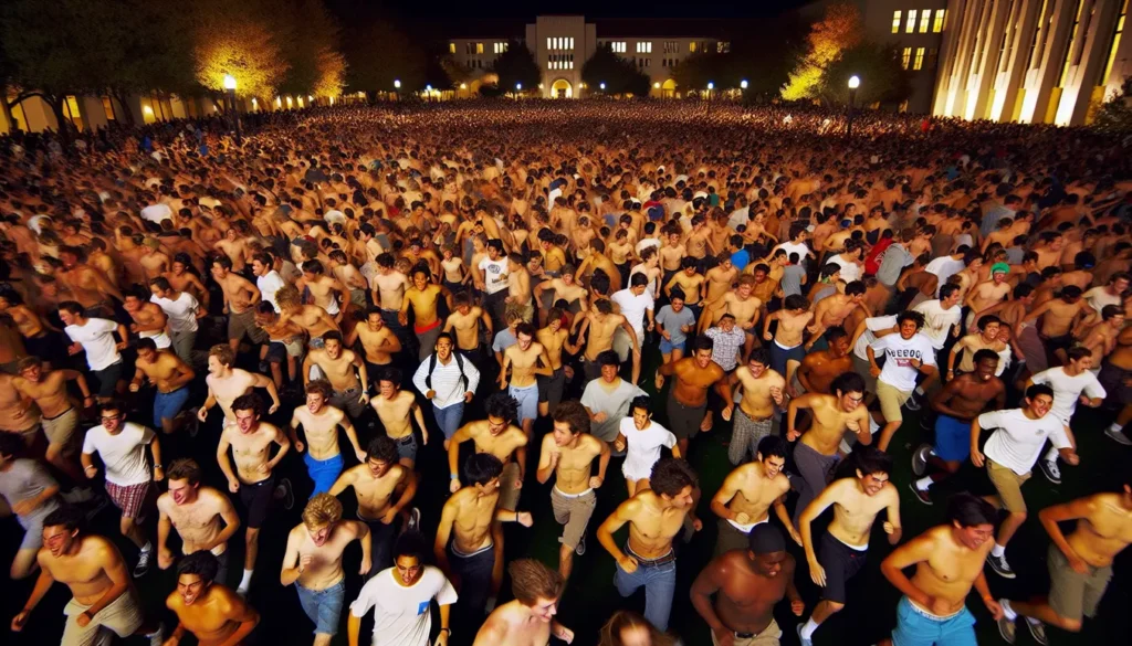 Når eksamensnervene virkelig har tatt fullstendig overhånd, gjør studentene på Harvard det eneste rasjonelle: de kaster klærne og tar seg en runde rundt Harvard Yard – splitter nakne! The Primal Scream, som tradisjonen kalles, involverer hundrevis (ja, du leste riktig!) av studenter som sammen løper byen rundt midt på natta. Alle hemninger og eksamensangst forsvinner (og kanskje litt av selvrespekten også). Noen bruker kun sokker. For ikke å fryse. Slikt blir det fellesskapsfølelse av!