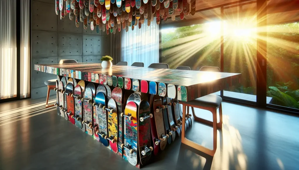 Utforsk 10 Fantastiske Spisebord-Design: Fra Gjenvunnet Skateboard til LED-Lys og Mer!
